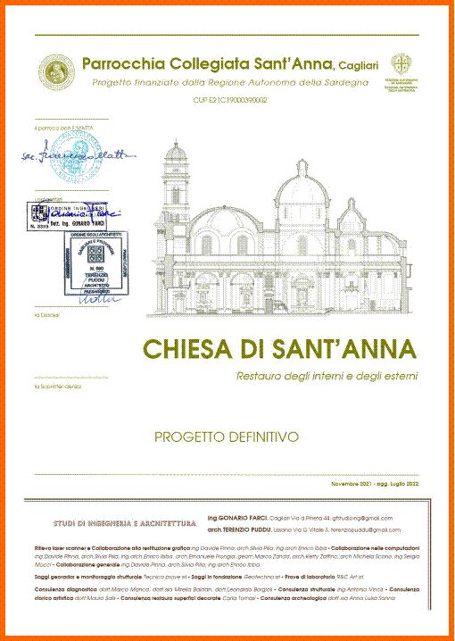 Parrocchia Chiesa di Sant’Anna in Cagliari Restauro degli interni e degli esterni. (Progetto preliminare e definitivo - Incarico congiunto con arch.T.Puddu - 2020 / 2023 - Importo lavori 1.628.000 €)